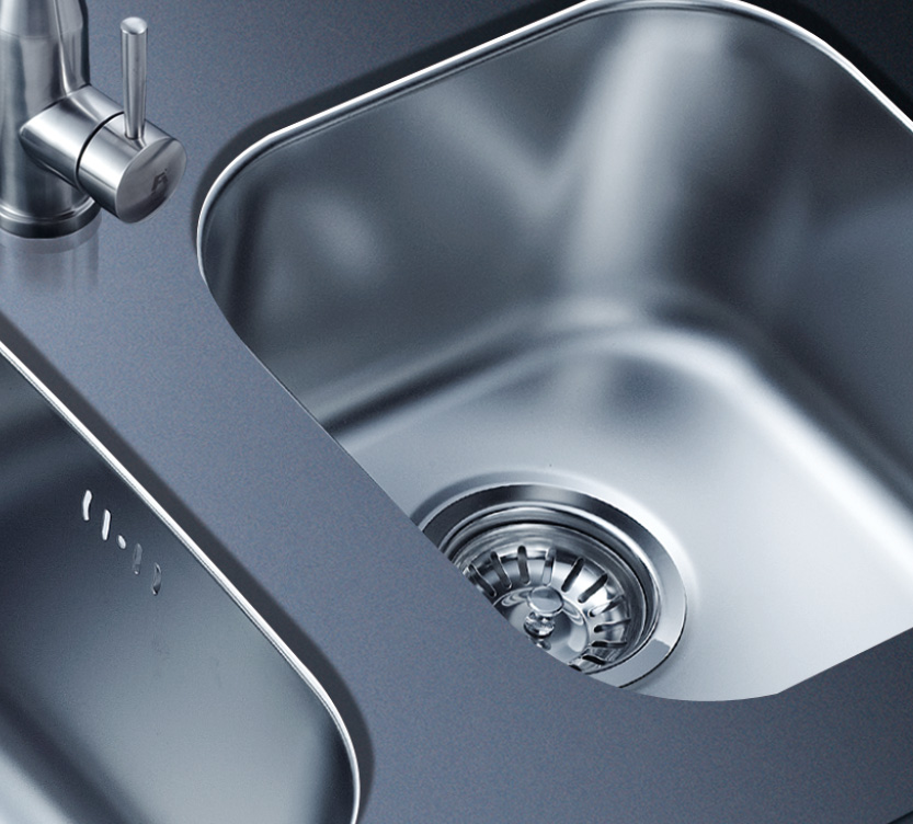 水槽四邊條采用一次成型的折彎加強筋工藝,雙倍堅固,承重力更強,解決了普通焊接工藝容易出現的凹點、脫焊、易割手等問題。專業配置的密封條和固定夾,安裝平整度高,不滲水,不松動