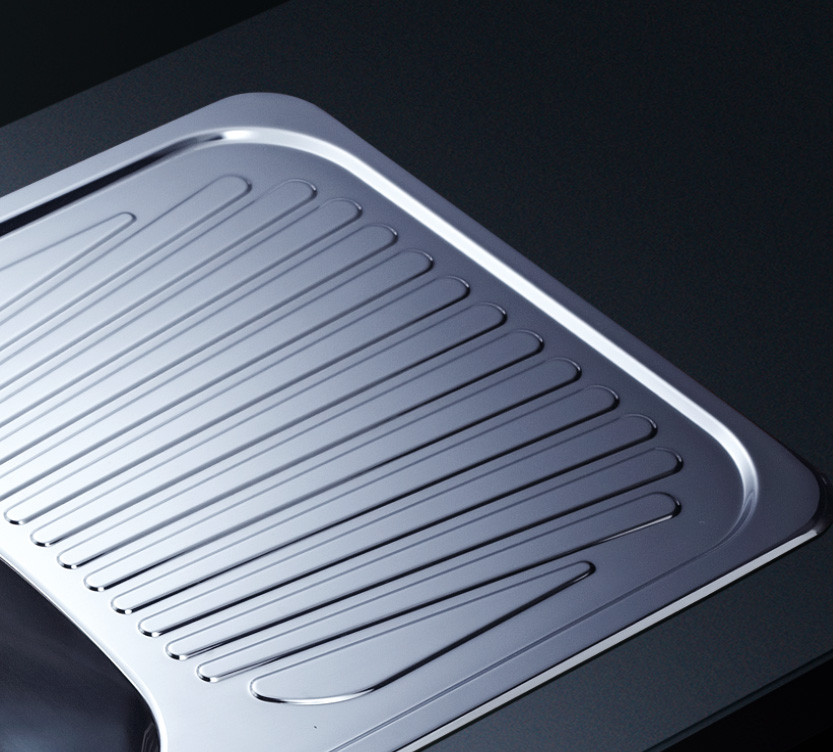 阿發(fā)水槽立邊采用國際先進的10-25°小R角一次成型拉伸技術(shù),更具立體感與時尚潮流,亦能充分擴展水槽利用空間;一次成型拉伸技術(shù),杜絕了焊接工藝易產(chǎn)生的水槽生銹,脫焊事故,充分保障水槽50年以上的使用壽命