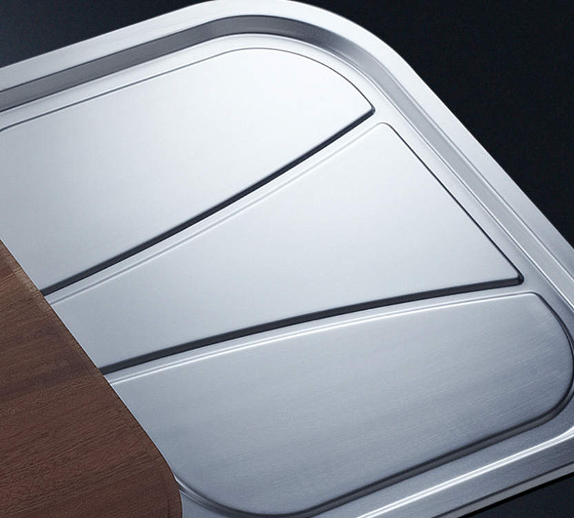 槽底采用斜面壓痕,四輻導(dǎo)流槽設(shè)計(jì),與平面壓痕和無(wú)痕水槽相比,導(dǎo)水更為流暢,下水更迅速,能有效防止積水,消除沉淀物