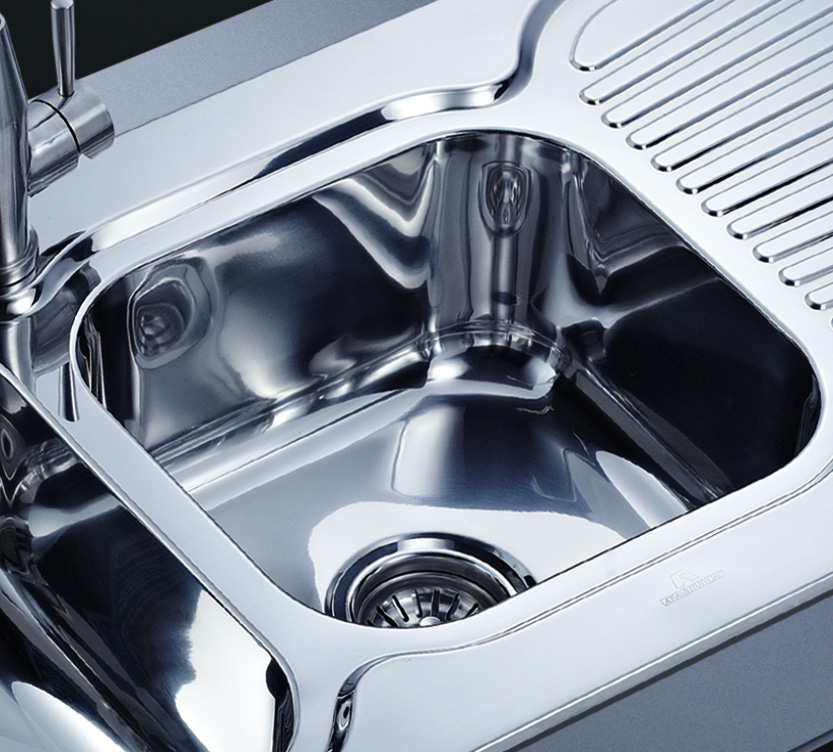 阿發水槽立邊采用國際先進的10-25°小R角一次成型拉伸技術,更具立體感與時尚潮流,亦能充分擴展水槽利用空間;一次成型拉伸技術,杜絕了焊接工藝易產生的水槽生銹,脫焊事故,充分保障水槽50年以上的使用壽命