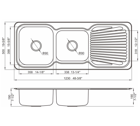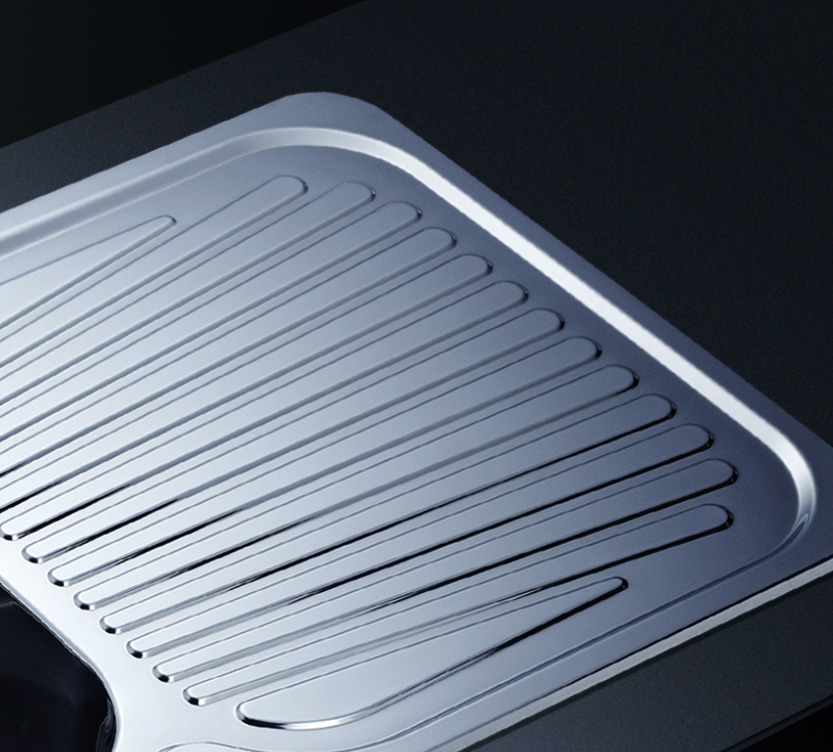 槽底采用斜面壓痕,四輻導流槽設計,與平面壓痕和無痕水槽相比,導水更為流暢,下水更迅速,能有效防止積水,消除沉淀物