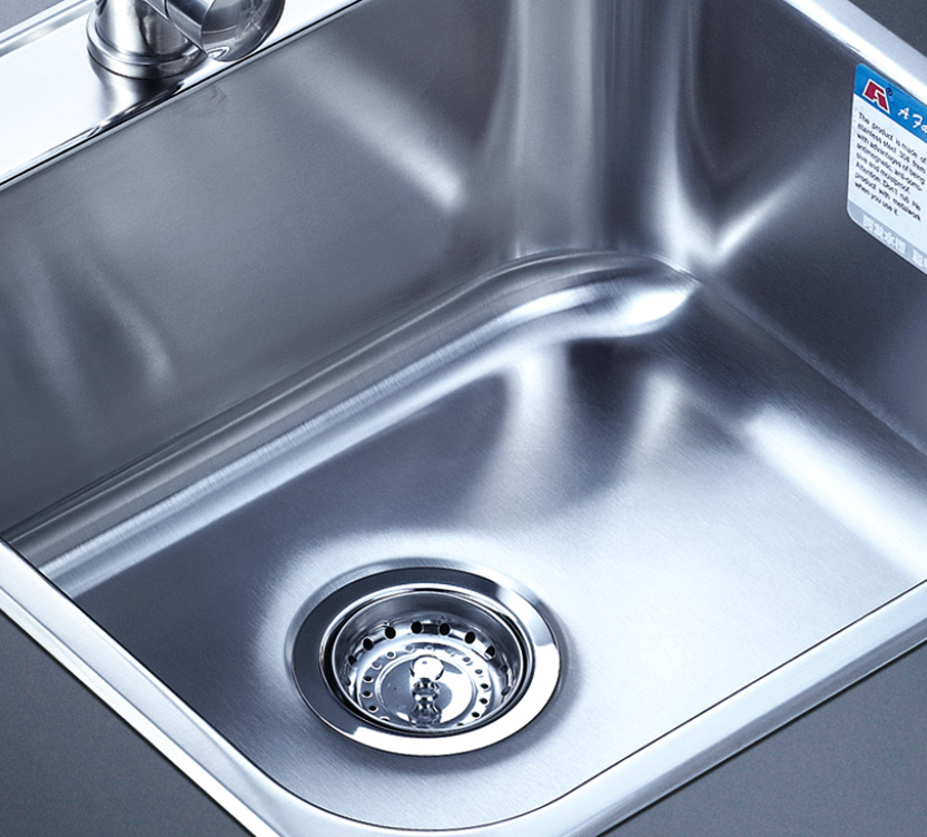 阿發水槽整體經拉絲處理,質地更加光滑,視覺更加柔和。能有效抵擋異物撞擊,刮傷及磨損,防止油污沾染,常用常新;柔和的光澤令水槽平添高雅氣質,更能避免鏡面材質反射的光污染