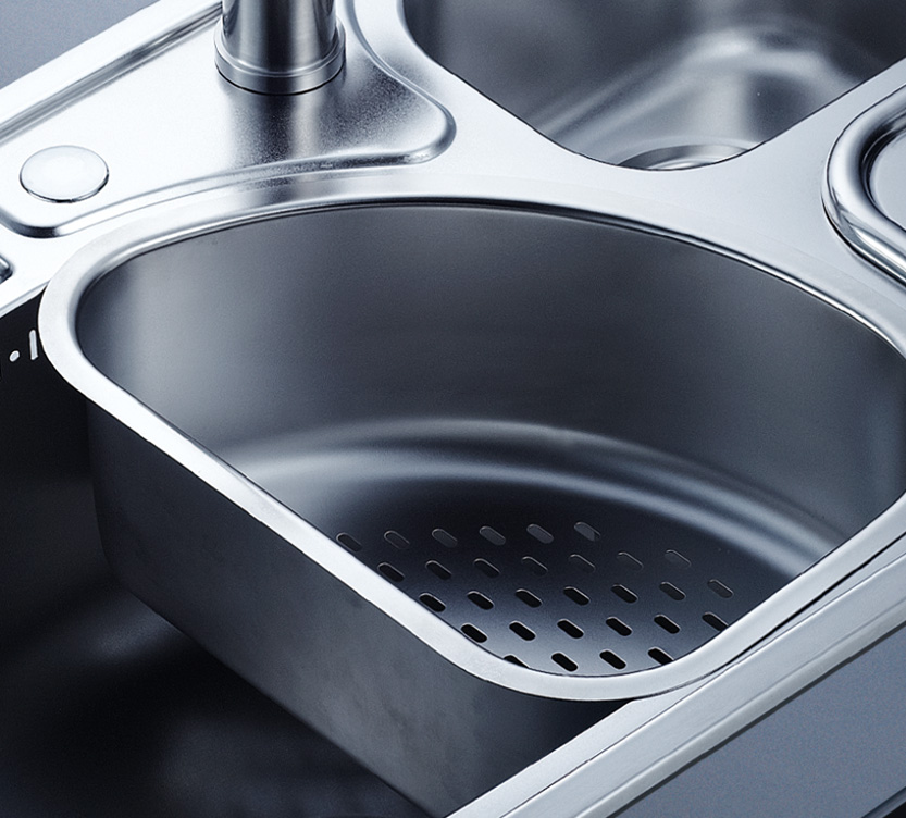 水槽四邊條采用一次成型的折彎加強筋工藝,雙倍堅固,承重力更強,解決了普通焊接工藝容易出現的凹點、脫焊、易割手等問題。專業配置的密封條和固定夾,安裝平整度高,不滲水,不松動