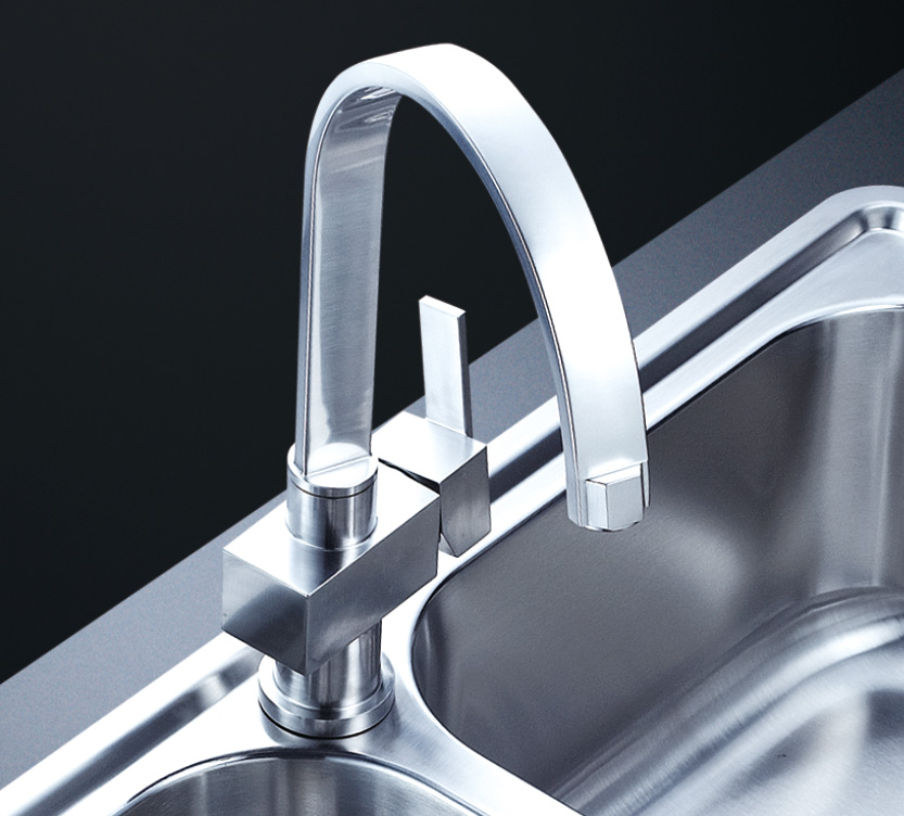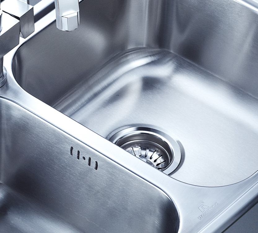 阿發(fā)水槽整體經(jīng)拉絲處理,質(zhì)地更加光滑,視覺更加柔和。能有效抵擋異物撞擊,刮傷及磨損,防止油污沾染,常用常新;柔和的光澤令水槽平添高雅氣質(zhì),更能避免鏡面材質(zhì)反射的光污染