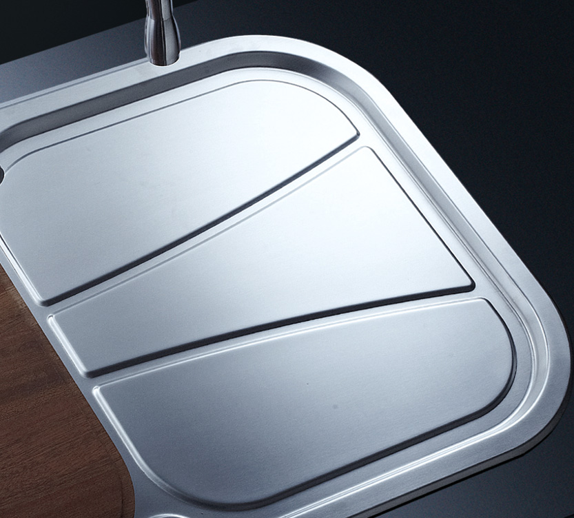 阿發水槽立邊采用國際先進的10-25°小R角一次成型拉伸技術,更具立體感與時尚潮流,亦能充分擴展水槽利用空間;一次成型拉伸技術,杜絕了焊接工藝易產生的水槽生銹,脫焊事故,充分保障水槽50年以上的使用壽命