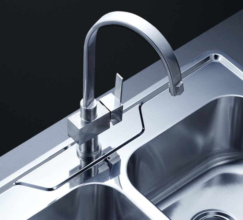 阿發(fā)水槽整體經(jīng)拉絲處理,質(zhì)地更加光滑,視覺更加柔和。能有效抵擋異物撞擊,刮傷及磨損,防止油污沾染,常用常新;柔和的光澤令水槽平添高雅氣質(zhì),更能避免鏡面材質(zhì)反射的光污染