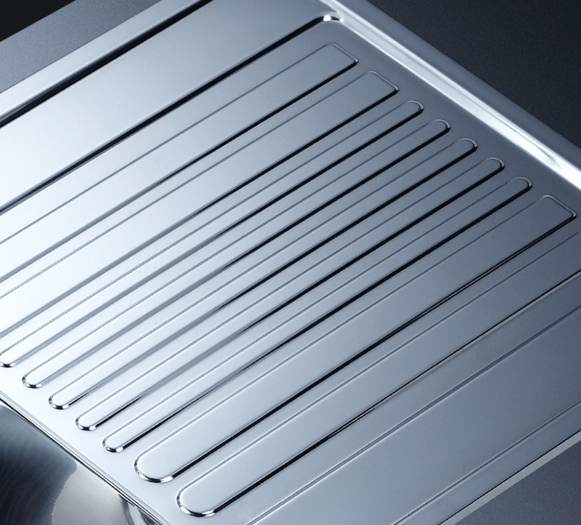 阿發(fā)水槽立邊采用國(guó)際先進(jìn)的10-25°小R角一次成型拉伸技術(shù),更具立體感與時(shí)尚潮流,亦能充分?jǐn)U展水槽利用空間;一次成型拉伸技術(shù),杜絕了焊接工藝易產(chǎn)生的水槽生銹,脫焊事故,充分保障水槽50年以上的使用壽命