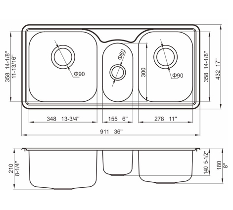 槽底采用斜面壓痕,四輻導流槽設計,與平面壓痕和無痕水槽相比,導水更為流暢,下水更迅速,能有效防止積水,消除沉淀物