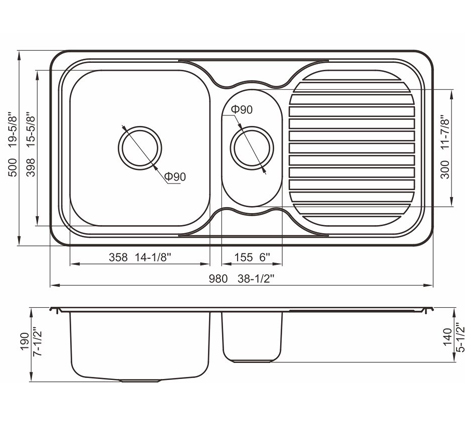 槽底采用斜面壓痕,四輻導流槽設計,與平面壓痕和無痕水槽相比,導水更為流暢,下水更迅速,能有效防止積水,消除沉淀物