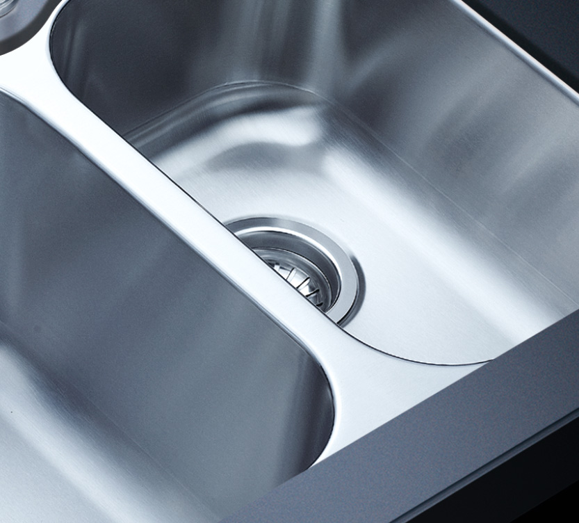 完美的水槽加固設計,有效防止溢水,水槽槽體一次成形的凹型設計,免除流水滲漏損壞櫥柜,完美凹型水槽,打造優雅廚房