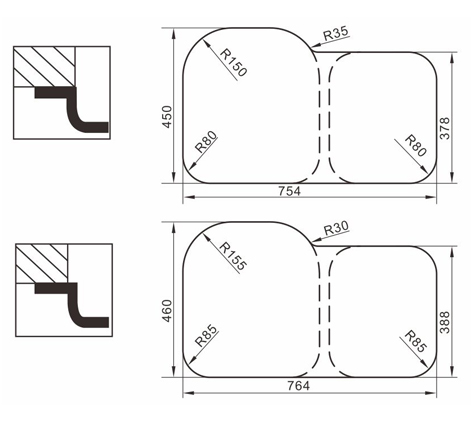 阿發(fā)水槽立邊采用國際先進的10-25°小R角一次成型拉伸技術(shù),更具立體感與時尚潮流,亦能充分擴展水槽利用空間;一次成型拉伸技術(shù),杜絕了焊接工藝易產(chǎn)生的水槽生銹,脫焊事故,充分保障水槽50年以上的使用壽命