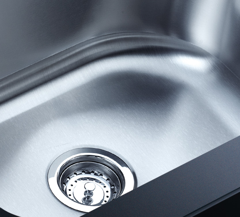 阿發水槽整體經拉絲處理,質地更加光滑,視覺更加柔和。能有效抵擋異物撞擊,刮傷及磨損,防止油污沾染,常用常新;柔和的光澤令水槽平添高雅氣質,更能避免鏡面材質反射的光污染