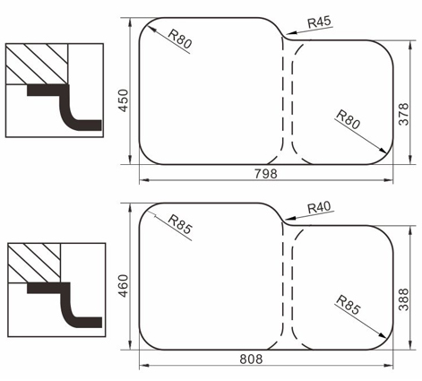 水槽四邊條采用一次成型的折彎加強筋工藝,雙倍堅固,承重力更強,解決了普通焊接工藝容易出現的凹點、脫焊、易割手等問題。專業配置的密封條和固定夾,安裝平整度高,不滲水,不松動