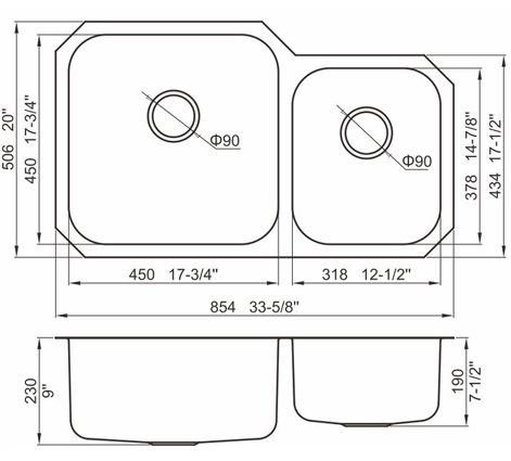 槽底采用斜面壓痕,四輻導流槽設計,與平面壓痕和無痕水槽相比,導水更為流暢,下水更迅速,能有效防止積水,消除沉淀物