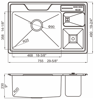 槽底采用斜面壓痕,四輻導(dǎo)流槽設(shè)計,與平面壓痕和無痕水槽相比,導(dǎo)水更為流暢,下水更迅速,能有效防止積水,消除沉淀物