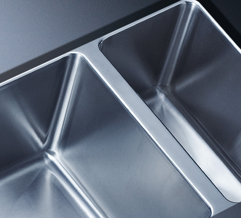 水槽四邊條采用一次成型的折彎加強筋工藝,雙倍堅固,承重力更強,解決了普通焊接工藝容易出現的凹點、脫焊、易割手等問題。專業配置的密封條和固定夾,安裝平整度高,不滲水,不松動