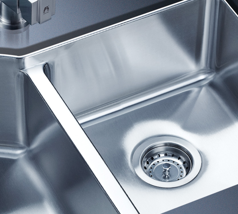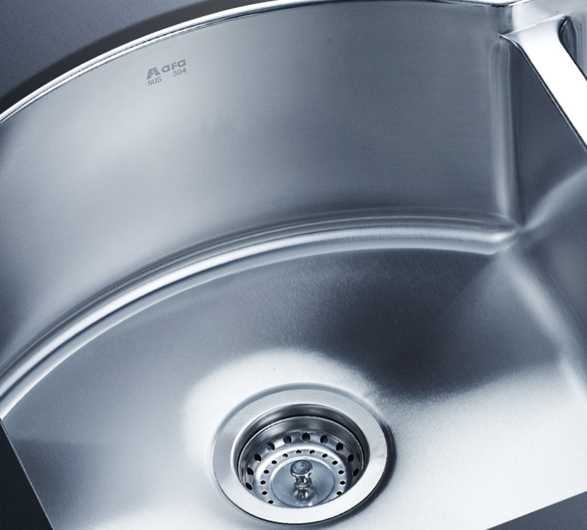 阿發(fā)水槽整體經(jīng)拉絲處理,質(zhì)地更加光滑,視覺更加柔和。能有效抵擋異物撞擊,刮傷及磨損,防止油污沾染,常用常新;柔和的光澤令水槽平添高雅氣質(zhì),更能避免鏡面材質(zhì)反射的光污染