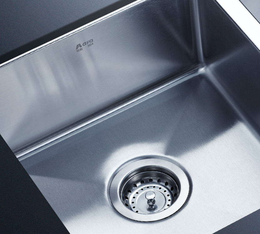 阿發水槽整體經拉絲處理,質地更加光滑,視覺更加柔和。能有效抵擋異物撞擊,刮傷及磨損,防止油污沾染,常用常新;柔和的光澤令水槽平添高雅氣質,更能避免鏡面材質反射的光污染